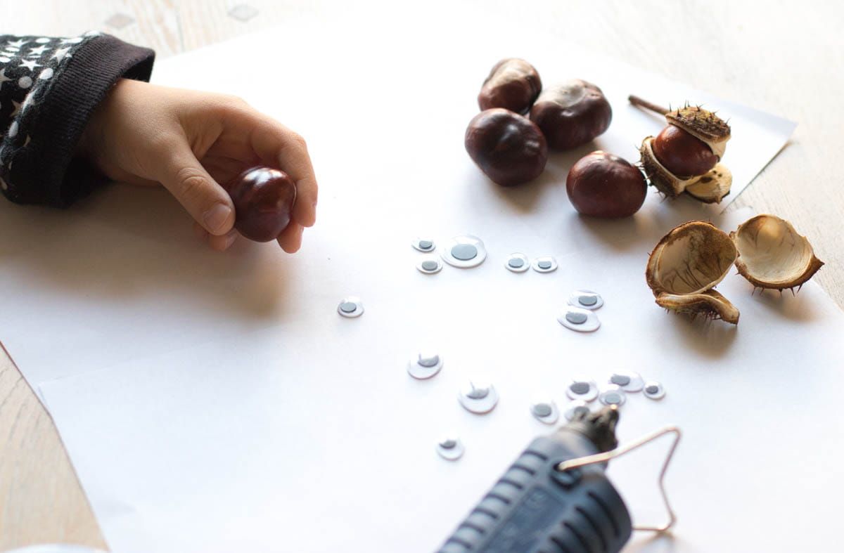 - Chestnuts, autumn leaves, acorns small twigs