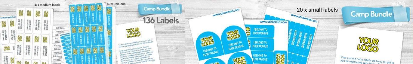 We produce custom label packs for many camps. We print the camper's name, with or without your logo and colors, and private message on the best quality at the best price! Fastest turnaround guarantee...